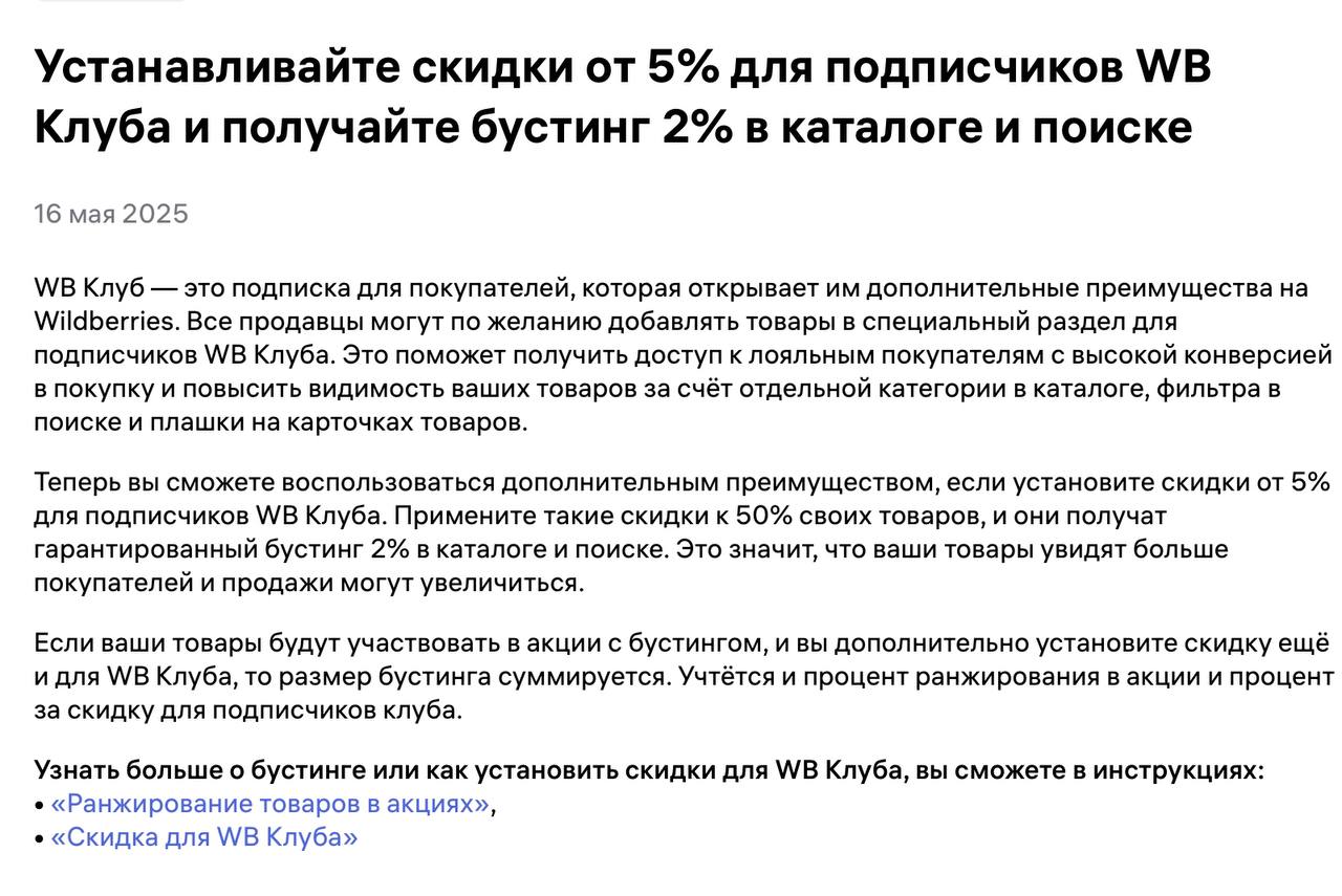 ΠΡΠΎΠ΄Π°Π²ΡΡ ΡΠ΅ΠΏΠ΅ΡΡ ΠΌΠΎΠ³ΡΡ ΡΡΡΠ°Π½ΠΎΠ²ΠΈΡΡ ΡΠΊΠΈΠ΄ΠΊΡ ΠΎΡ 5% ΡΠΏΠ΅ΡΠΈΠ°Π»ΡΠ½ΠΎ Π΄Π»Ρ ΠΏΠΎΠ΄ΠΏΠΈΡΡΠΈΠΊΠΎΠ² WB ΠΠ»ΡΠ±Π°. ΠΡΠ»ΠΈ ΡΠ°ΠΊΠ°Ρ ΡΠΊΠΈΠ΄ΠΊΠ° Π±ΡΠ΄Π΅Ρ ΠΏΡΠΈΠΌΠ΅Π½Π΅Π½Π° ΠΌΠΈΠ½ΠΈΠΌΡΠΌ ΠΊ 50% Π°ΡΡΠΎΡΡΠΈΠΌΠ΅Π½ΡΠ°, ΡΠΎΠ²Π°ΡΡ ΠΏΠΎΠ»ΡΡΠ°Ρ Π³Π°ΡΠ°Π½ΡΠΈΡΠΎΠ²Π°Π½Π½ΡΠΉ Π±ΡΡΡΠΈΠ½Π³ +2% Π² ΠΊΠ°ΡΠ°Π»ΠΎΠ³Π΅ ΠΈ ΠΏΠΎΠΈΡΠΊΠ΅.