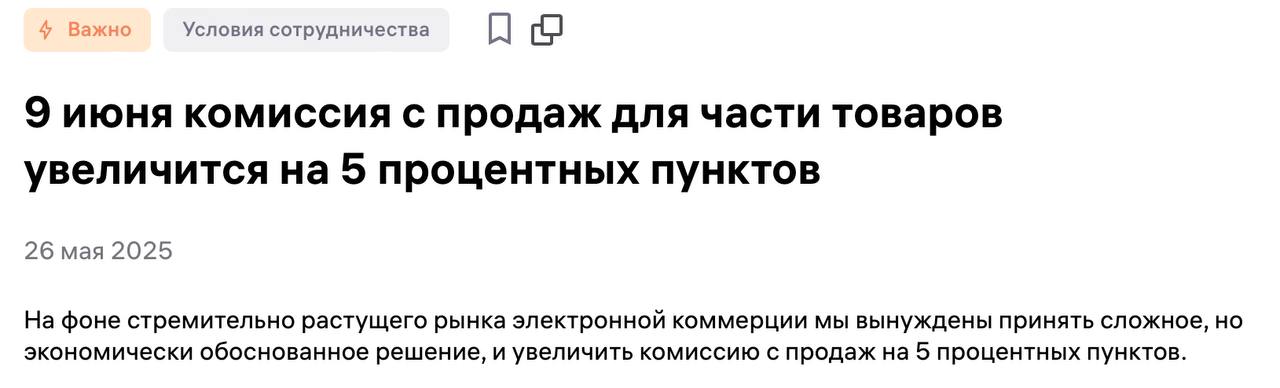 С 9 июня Wildberries увеличит комиссию с продаж на 5 процентных пунктов — решение объясняется необходимостью масштабных инвестиций в инфраструктуру на фоне стремительного роста e-commerce.
