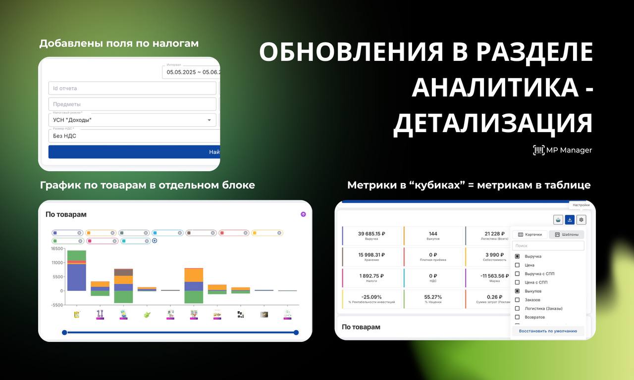 Продолжаем делать MP Manager ещё удобнее и понятнее 💡 Теперь анализ данных по товарам стал точнее, гибче и быстрее — рассказываем, что изменилось: