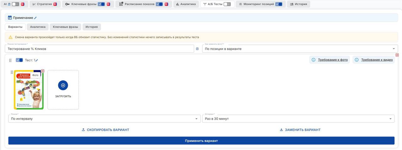 ⚫️ Алерт «Смена варианта» и выбор режима теста теперь наверху Важные действия больше не теряются — всё видно сразу при работе с тестом.