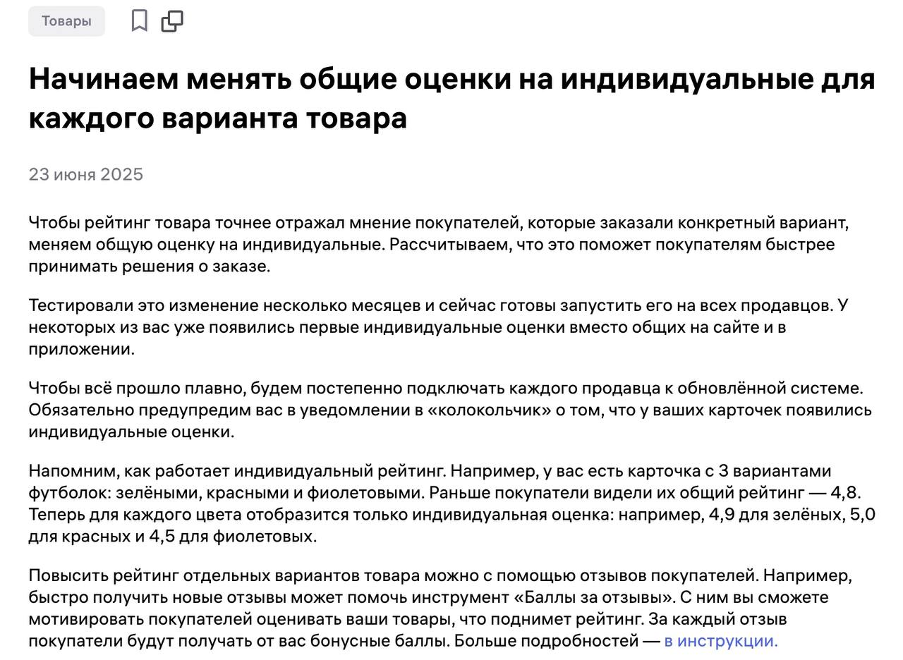 π Wildberries Π²Π²ΠΎΠ΄ΠΈΡ ΠΈΠ½Π΄ΠΈΠ²ΠΈΠ΄ΡΠ°Π»ΡΠ½ΡΠ΅ ΠΎΡΠ΅Π½ΠΊΠΈ ΠΏΠΎ ΠΊΠ°ΠΆΠ΄ΠΎΠΌΡ Π²Π°ΡΠΈΠ°Π½ΡΡ ΡΠΎΠ²Π°ΡΠ°