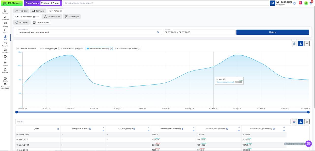 💡 Это идеальный инструмент, если вы: — хотите понять, когда включать рекламу — выбираете фразы для запуска карточек — следите за сезонностью ниши — контролируете эффективность рекламных ключей
