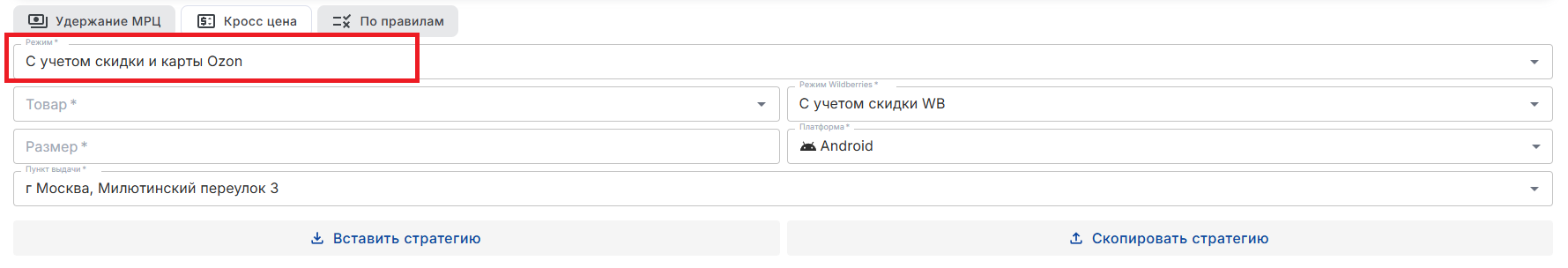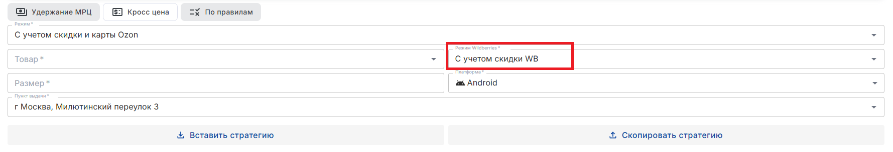 - Выберите цену на Wildberries, которую сервис будет устанавливать на OZON