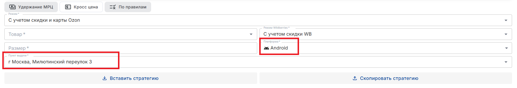 - Дополнительно выбираем платформу и пункт выдачи Wildberries. Цена Wildberries может меняться, в зависимости от Платформы, с которой покупатель заходит на сайт, а так же от выбранного пункта выдачи