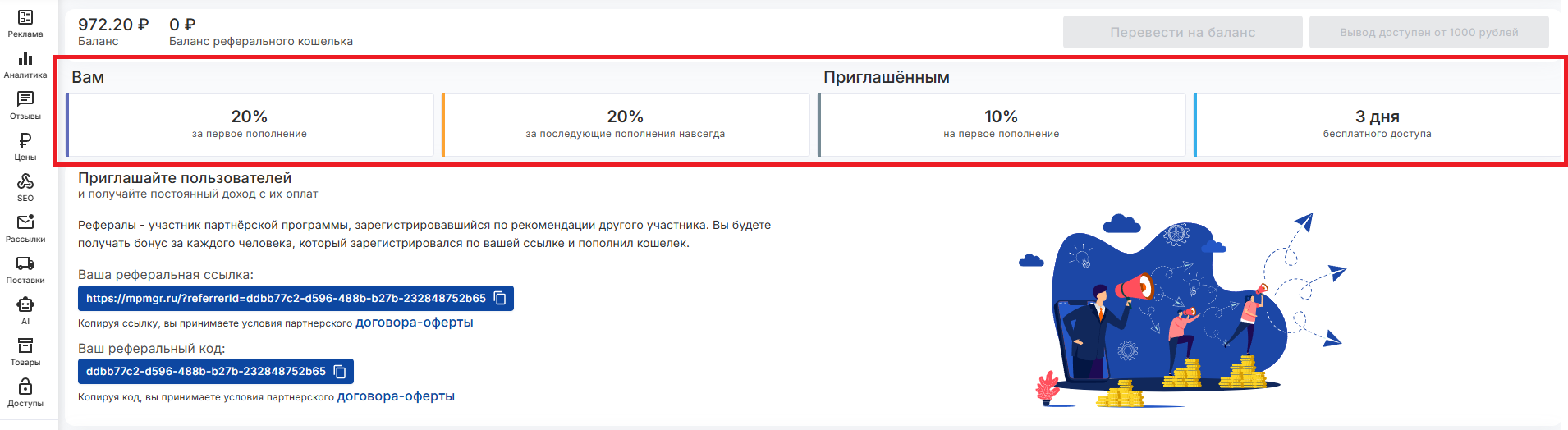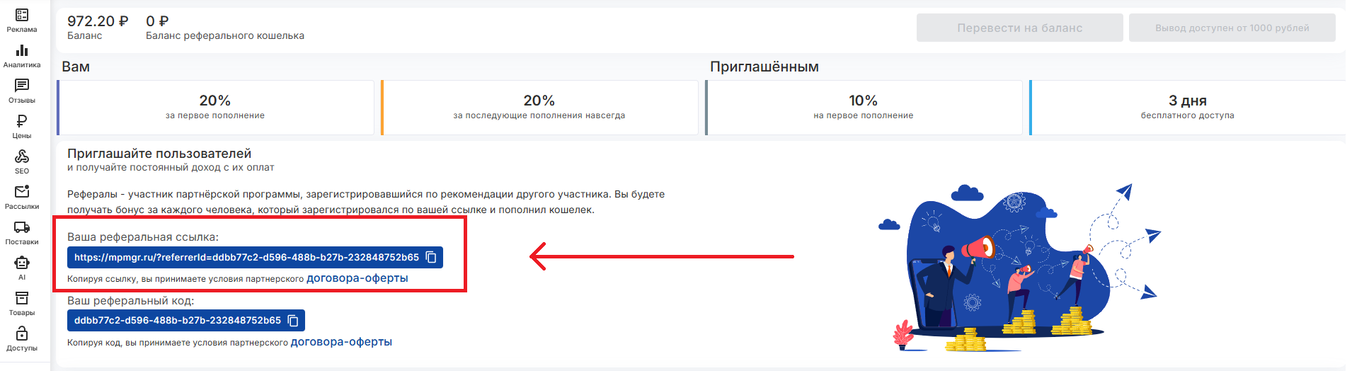 Приглашайте пользователей в MP Manager и получайте постоянный доход с их оплат