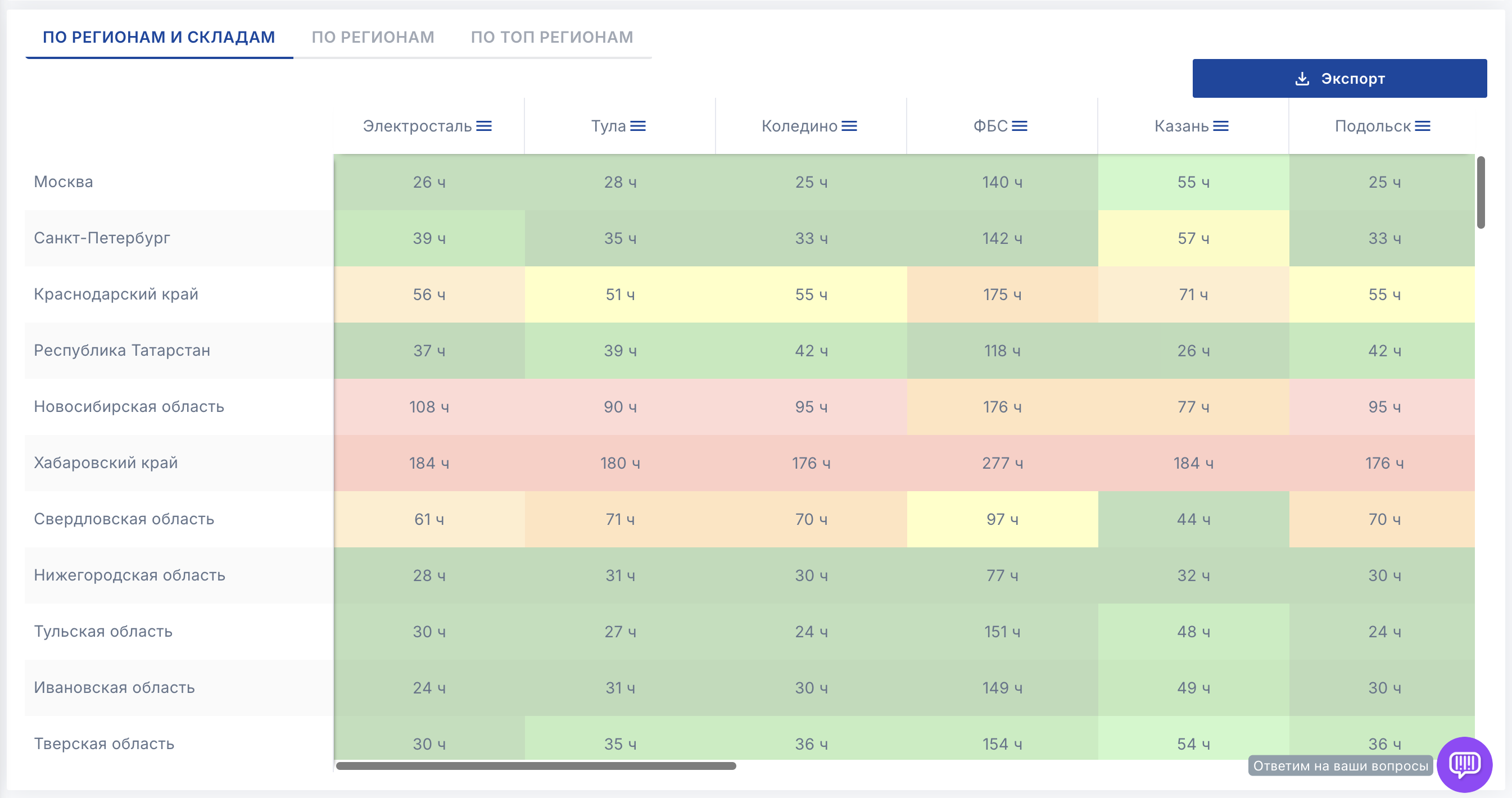 - По регионам и складам - показывает скорость доставки со складов в регионы